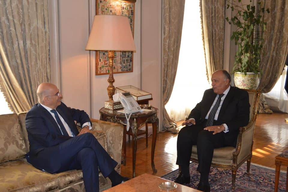 عقد سامح شكري وزير الخارجية، الأحد جلسة مباحثات مع نظيره اليوناني “نيكوس دندياس” تناولت الملفات الإقليمية، وسُبل التعامل مع تطورات الأوضاع بالمنطقة، خاصةً التطورات المتعاقبة على الساحة الليبية وآخرها توقيع مذكرتيّ تفاهم بين تركيا ورئيس المجلس الرئاسي لحكومة الوفاق الليبية فايز السراج.
