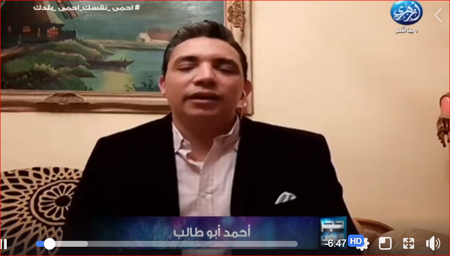كما ظهر الإعلامي أحمد أبو طالب في برنامجه حجر الأساس الذي يذاع الاثنين والثلاثاء من كل أسبوع لأول مرة من منزله مستضيفا ضيوفا من مصر وألمانيا عبر تقنية البث المباشر أون لاين متحدثا عن آخر تطورات التكاتف الدولي والعربي لمواجهة الفيروس القاتل.