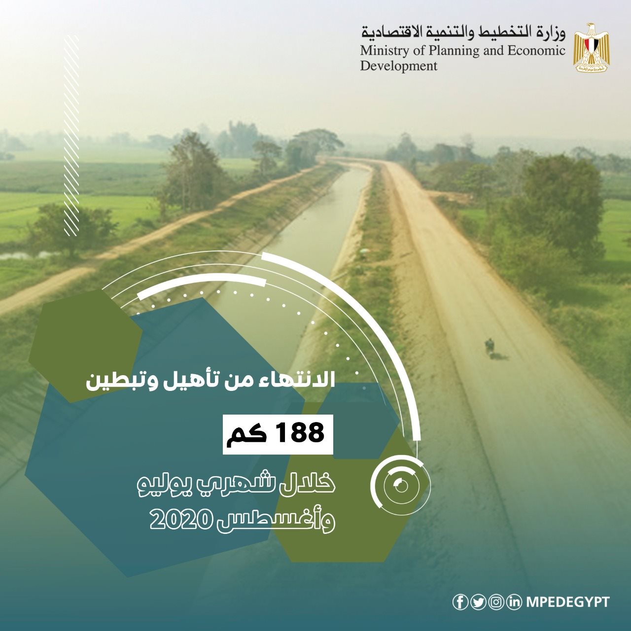 كما أوضح تقرير وزارة التخطيط والتنمية الاقتصادية أن خطة المشروع تستهدف خلال عامين تأهيل وتبطين ترع بأطوال تبلغ 7 آلاف كم، يخص عام 20/2021 نسبة 43% منها.