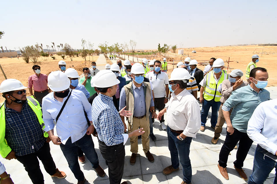 وتجول الوزير ومرافقوه، بجميع قطاعات المشروع، لمتابعة الموقف التنفيذي للأعمال المختلفة الجاري تنفيذها، وتفقد أعمال الزراعة، والتبليطات، والمشايات، والإنارة، وموقف الأجزاء المقرر الانتهاء منها بنهاية الشهر الجاري، حيث شدد على ضرورة الاهتمام بجودة جميع الأعمال المنفذة.