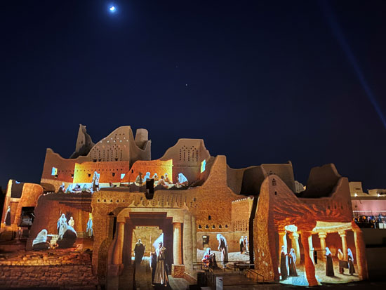 افتراضية لقمة قادة مجموعة العشرين، والتي عرضت على جدران حي الطريف في الدرعية.