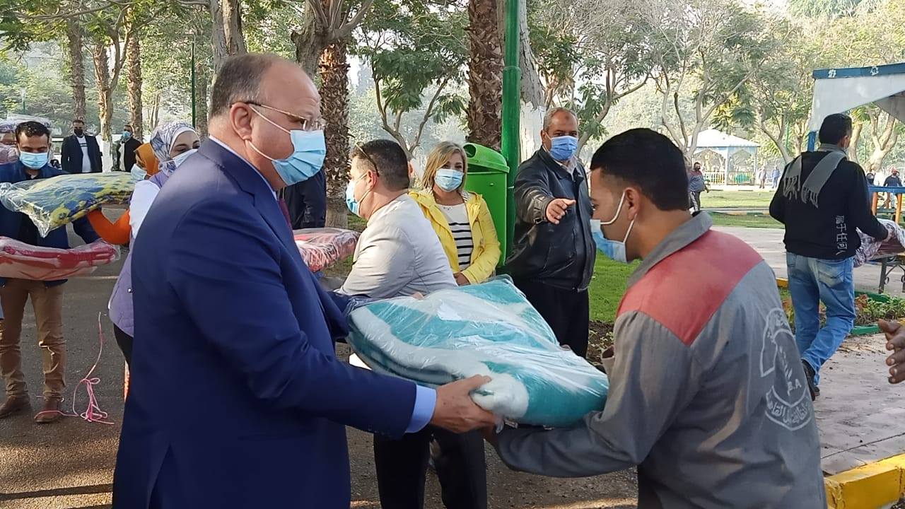 والتقى المحافظ، خلال جولته، مع العاملين بالهيئة العامة لنظافة وتجميل القاهرة حيث قام بتهنئتهم بالعام الجديد وتوزيع عدد من الهدايا العينية عليهم بهذه المناسبة.