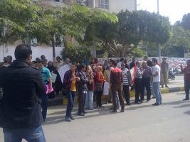 نظم العشرات من المتظاهرين وقفة احتجاجية صباح اليوم امام ديوان عام المحافظة تنتمى الى الكتلة الشعبية تطالب باقالة المحافظ الدكتور احمد فوزى شرين متهمينه بالتستر على الفاسدين فى الديوان العام للمحافظة واقصاء الثوار عن المشاركة فى الاجتماعات التى تخص مشاكل المحافظة واستحواذ بعض المنتمين للحزب الوطنى على المشهد كما اضاف المحتجين ان المنوفية تعج بالكثير من المشاكل تشمل كل القطاعات ولم يحدث تغير مطلقا برغم ابلاغه بها رافعين هتافات” يا محافظ فينك فينك … شلة فسدة بينا وبينك