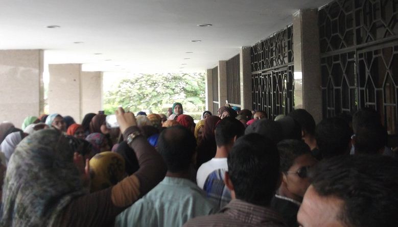 كما أعرب المتظاهرون عن يأسهم لرفض الجامعة تسكين العديد من الطلاب و رددوا هتافات ” واحد إتنين رئيس الجامعه فين , سوء إقامة و سوء تغذية كل ده حرام حرام , ياللى ساكت ساكت لية خدت حقك و لا اية “