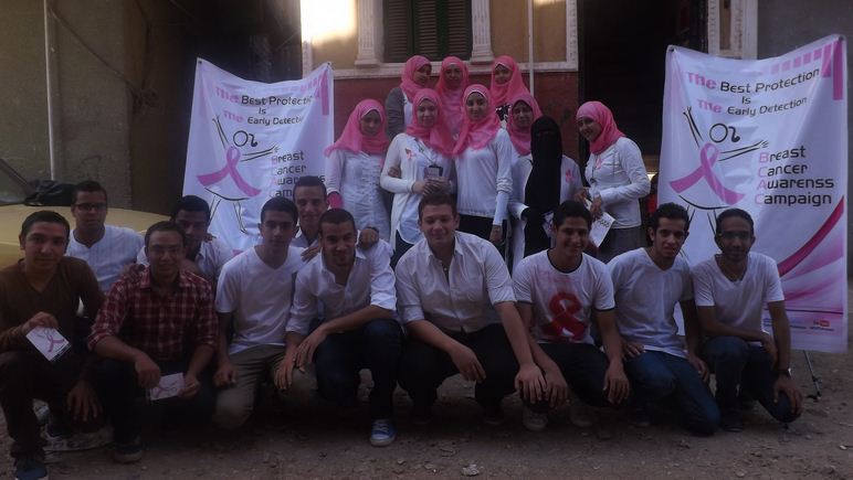حيث قام الطلاب بعمل حملات توعية داخل الكليات والحرم الجامعي لتعريف الطلاب بماهو سرطان الثدي وأسباب الأصابة والأعراض التي يمكن ملاحظتها وكيفية الوقاية منها وأكد بأن الكشف عن المرض يتم بالأشعة التشخيصية لسرطان الثدي الماموجرام .