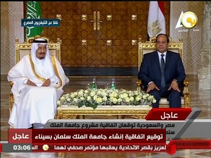أعلن خادم الحرمين الشريفين الملك سلمان بن عبدالعزيز، الجمعة، عن الاتفاق مع مصر على إنشاء جسر بري بين المملكة العربية السعودية ومصر. وأكد العاهل السعودي، خلال كلمته في القمة المشتركة مع نظيره الرئيس عبد الفتاح السيسي، أن زيارته إلى مصر تعد تعزيزا للعلاقات التاريخية بين البلدين. ومن جانبه، قرر الرئيس …