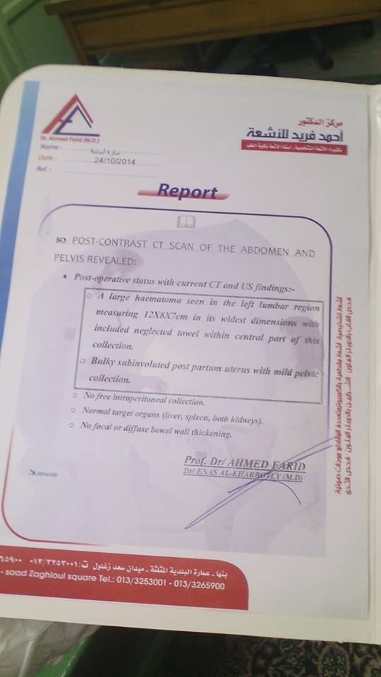 أكمل القراءة »بلاغ ضد طبيب نساء ببنها ترك فوطة داخل بطن مريضة اثناء ولادتها قيصريا