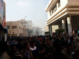 ألقتالأجهزةالأمنيةبمديريةأمنالشرقية،منذقليل،القبضعلى 8 منطلابالإخوان،فىالاشتباكاتالتىوقعتبينطلابالإخوانوالطلابالمستقلين،تبادلفيهاالطرفانتراشقالطوبوالحجارة . وذلكأثناءمسيرةنظمهاعددمنأنصارالمعزولداخلالحرمالجامعيوقاموابترديدالهتافاتالمعاديةللجيشوالشرطةومناهضةللدستورالجديدمماأثارغضبالطلابالمستقلينووقعتبينهماإشتباكاتبالطوبوالحجارةوتدخلالأمنوقامبتفريقهموألقيالقبضعلي 8 طلابمنأنصارالمعزرول