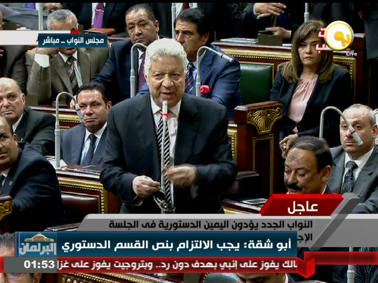 مشادات داخل مجلس النواب في أولي جلساته بسبب اعتراض النائب البرلماني مرتضي منصور أداء اليمين الدستورية كما هي لاعتراضه علي ثورة 25يناير علي حد قوله. وكان حالة من الهرج والمرج قد شهدتها الجلسة الاجرائية بعد قيام منصور بحلف اليمين ناقصا, ما أثار النواب اعتراضا علي ذلك, مؤكدين أنه لن تصح …