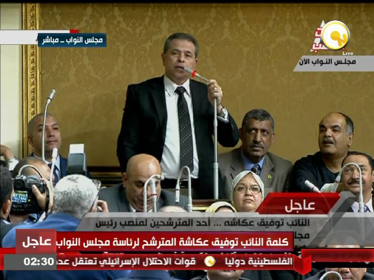 أعلن النائب البرلماني توفيق عكاشة ترشحه لرئاسة مجلس النواب الجديد, متنافسا مع 6 مرشحين أخرين أقواهم وأقربهم لمقعد الرئاسة الدكتور علي عبدالعال, مرشح “دعم مصر”. وقال عكاشة خلال كلمته التي أعلن فيها ترشحه: ” أعلن ترشحي لرئاسة برلمان 30يونيو بعد أن حملت كفني علي يدي في مصر كلها من أجل …