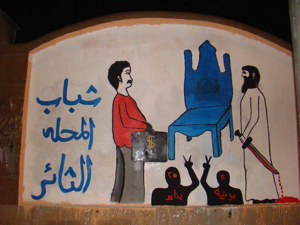 دشن شباب المحلة الثائر رسوم جرافيتية فى مدخل الجنوبي للمدينة المحلة الكبري رسم جرافيتي تدور أحداث حول الصراع السياسي فى الشارع المصري . ويهدف الرسم الجرافيتي إلى توعية شباب الثورة والحركات والأحزاب السياسية بضرورة دخول الثوار فى الحكم وجنى ثمار الثوره المجيده بموجتيها الأثنتين ضد نظام مبارك ونظام الأخوان والمحافظه …