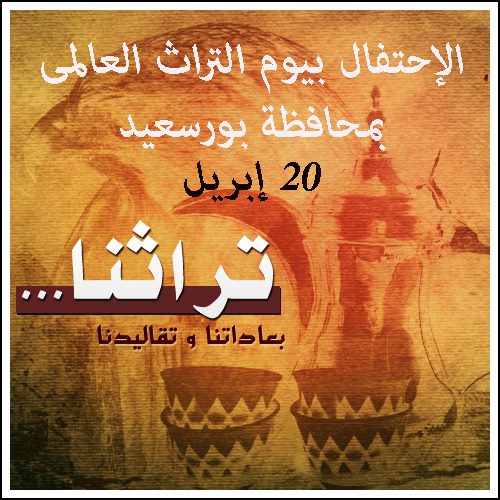 يقيم المجلس الاعلى للتراث و التنسيق الحضارى، اليوم الجمعة احتفالية كبرى بحديقة سعد زغلول للاحتفال بيوم التراث الاول ببورسعيد ، فى الرابعة عصرا بحديقة سعد زغلول. و تشمل الاحتفالية ، معرض الفنان عبده مشالى للتراث الشعبى ،و مسابقة الألعاب التراثية ( طيارة ورق ) بجوائز قيمة .،و نادى طيران بورسعيد …