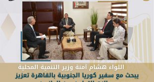 استقبل اللواء هشام آمنة وزير التنمية المحلية ، السيد/ هونج جين ووك سفير كوريا الجنوبية بالقاهرة وذلك بحضور عدد من قيادات الوزارة وممثلى السفارة الكورية . وفى بداية تقدم اللواء هشام آمنة ، بخالص الشكر والتقدير للحكومة الكورية على حسن استقبال واستضافة الوفد المصرى الذى ترأسه وزير التنمية المحلية للمشاركة …