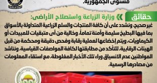 انتشر في بعض المواقع الإلكترونية وصفحات التواصل الاجتماعي أنباء بشأن انتشار بطيخ مسرطن بمختلف الأسواق على مستوى الجمهورية، وقد قام المركز الإعلامي لمجلس الوزراء بالتواصل مع وزارة الزراعة واستصلاح الأراضي، والتي نفت تلك الأنباء، مُؤكدةً أنه لا صحة لانتشار بطيخ مسرطن بمختلف الأسواق على مستوى الجمهورية، مُشددةً على أن كافة …
