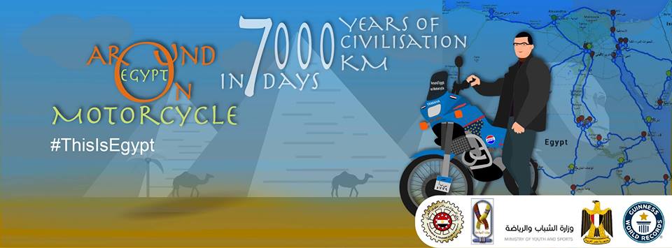 يقوم الرحالة و المغامر المصري علي عبده مؤسس مباردة “حول مصر على موتوسيكل لتنشيط السياحة”, بتنفيذ فعاليه جديدة ضمن مبادرته لدعم و تنشيط السياحة المصرية وذالك بمحاوله رسمية لتسجيل رقم قياسي عالمي جديد في موسوعه جينيس للارقام القياسية. وينوي المغامر المصر قطع أكبر مسافة لقائد دراجة نارية خلال 7 ايام …