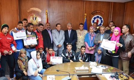 قام اللواء العربى السروى محافظ السويس ، صباح اليوم بتكريم أبطال المؤسسة العسكرية بالسويس في العاب القوى والملاكمة ورفع الاثقال والمصارعة والجودو والدراجات الفائزين والمشاركين في البطولات العربية والافريقية والحاصلين على المراكز المتقدمة بها وأعرب “السروى” عن إعتزازه وفخره بحصولهم على البطولات في المحافل المحلية والدولية وطالبهم بالحافظ عليها علي …
