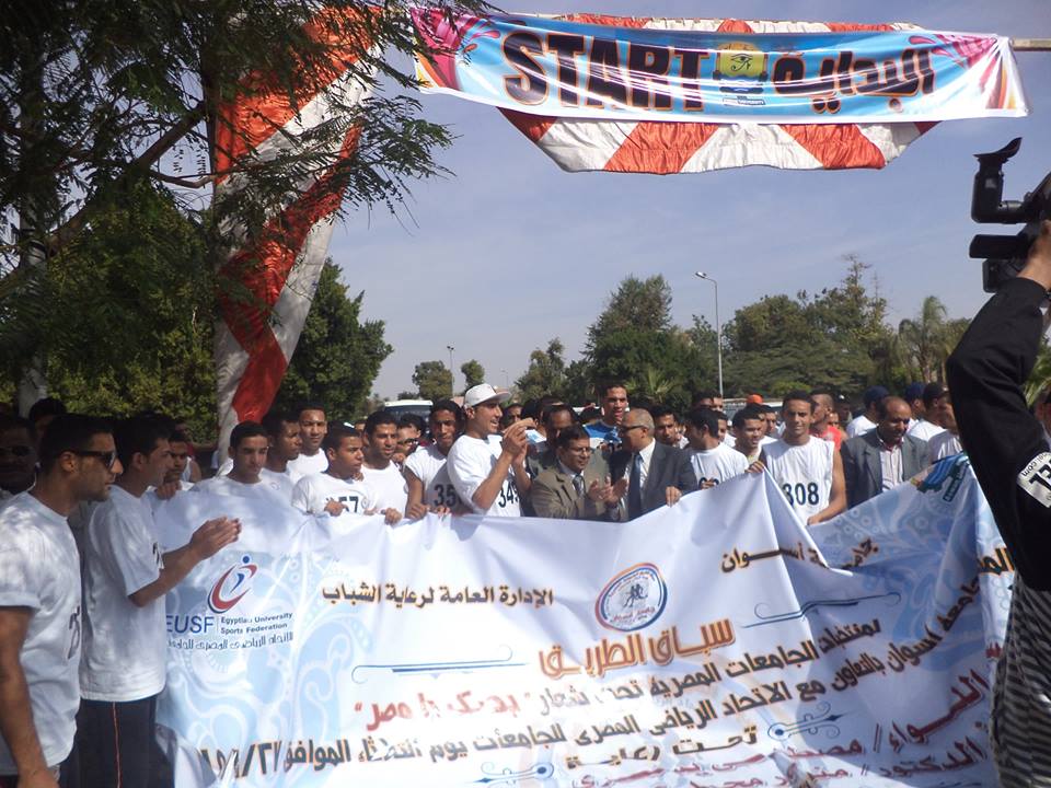 نظمت جامعة اسوان بالتنسيق مع الاتحاد المصرى الرياضى مارثون جرى بعنوان بنحبك يا مصر وذلك بمشاركة 18 جامعة مصرية بحضور رئيس جامعة اسوان الدكتور منصور كباش وووكيل وزارة الشباب والرياضة باسوان هانى رشدىبدأ المارثون من امام فندق هلنن وينتهى امام الصالة المغاطاه باسوان .
