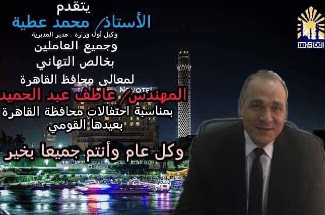 تقدم محمد عطية, مدير مديرية التربية والتعليم بمحافظة القاهرة. بالتهنئة للمهندس عاطف عبدالحميد, محافظ القاهرة بمناسبة العيد القومي للمحافظة والذي يواكب ذكري تأسيسها علي يد جوهر الصقلي عام 969م في عهد المعز لدين الله الفاطمي. جدير يالذكر أن طلاب ومعلمي تعليم القاهرة, يشاركون هذا العام في مختلف فعاليات احتفال المحافظة …