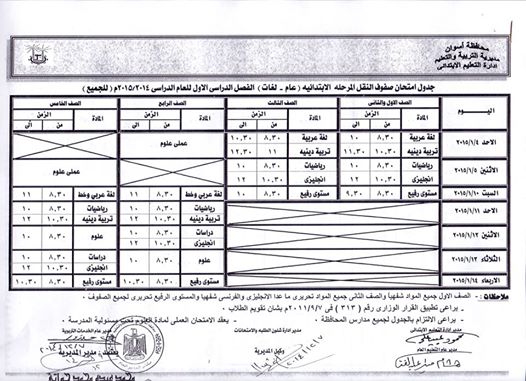 أكمل القراءة »التعليم باسوان يعتمد جدول امتحانات المرحلة الابتدائية عام ولغات
