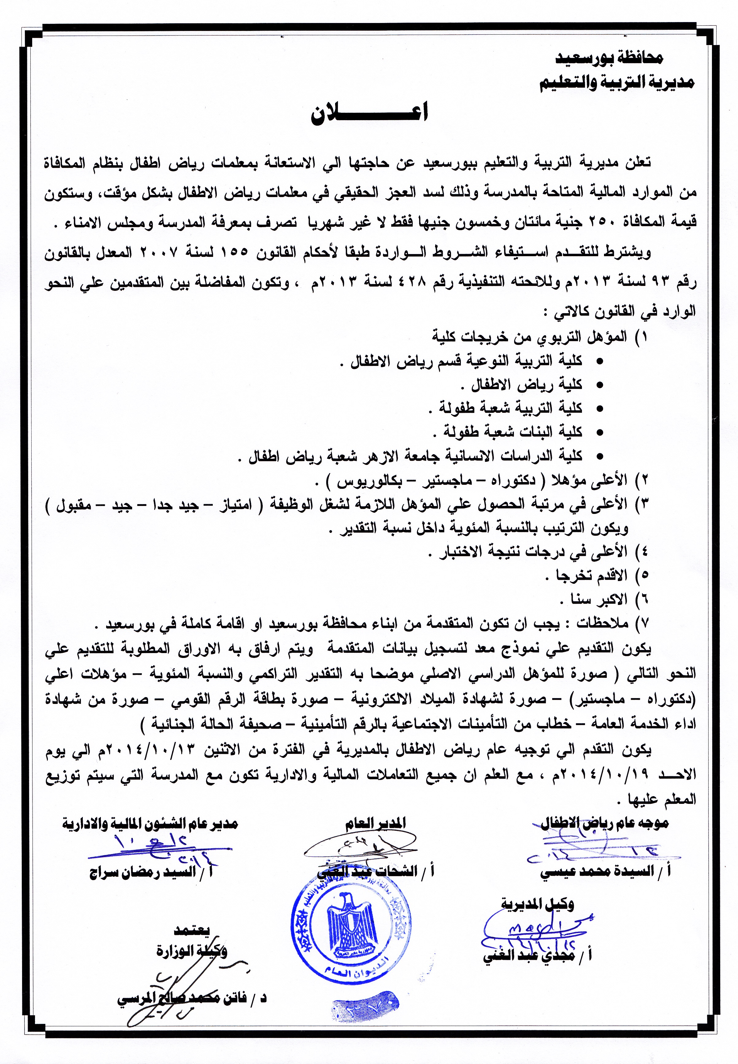 أكمل القراءة »رغم اعلان تعليم بورسعيد عن حاجتها لمعلمات رياض أطفال .. خريجين من كلية التربية يتساءلون عن أحقية باقى التخصصات