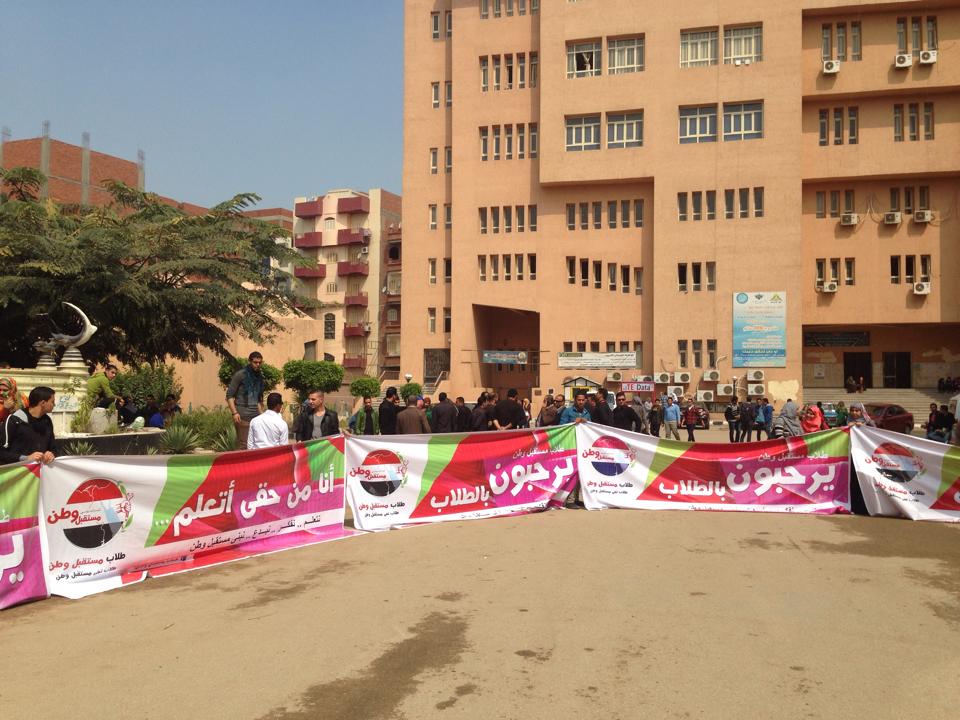 نظم العشرات من طلاب الاخوان المحظورة عدد من المسيرات بكليات الجامعة تحت شعار راجعين والبشوات فاهمين انطلقت المسيرات بمجمع الكليات وكليات الهندسة والطب البيطرى والزراعة ورفعوا خلالها شارات رابعة العدوية ، وصور الرئيس المعزول محمد مرسي وصورا لقتلى فض اعتصامى رابعة والنهضة وصورا لبعض الطلاب والاساتذة المعتقلين ورددوا العديد من …