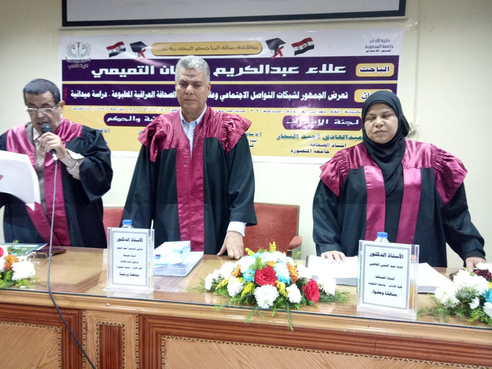 ناقش قسم الإعلام, بكلية الأداب جامعة المنصورة, رسالة الماجستير المقدمة من الباحث العراقي علاء عبدالكريم التميمي, تحت عنوان ” تأثير شبكات التواصل الاجتماعي وعلاقته بانقرائية الصحف العراقية المطبوعة”. وقد تناول الباحث العراقي خلال الرسالة أسباب تأثير مواقع التواصل الاجتماعي علي انقرائية الصحف العراقية, خاصة عقب حرب الخليج و ما تلاها …
