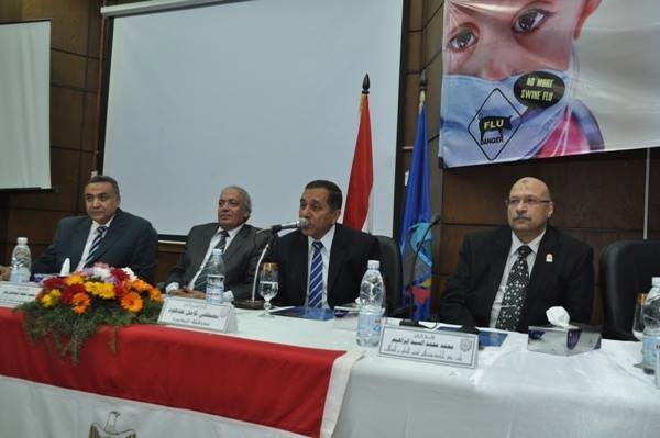 نظم قطاع خدمة المجتمع وتنمية البيئة بجامعة دمنهور بالتعاون مع وزارة الصحة والغرفة التجارية بالبحيرة ندوة علمية بكلية الصيدلة بمجمع دمنهور التعليمي تحت عنوان “انفلونزا الخنازير بين التهويل والتهوين “تحت رعاية اللواء مصطفى هدهود محافظ البحيرة وأ د / حاتم صلاح الدين – رئيس جامعة دمنهور . ،بحضور أ د …