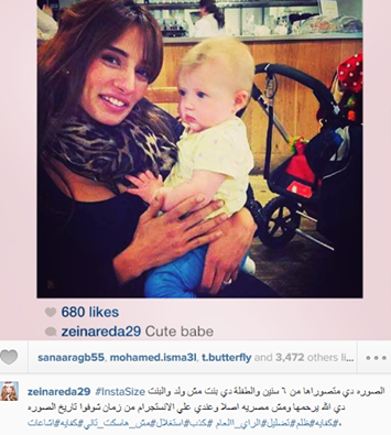 وضحت النجمة زينة على صفحتها بموقع تبادل الصور “انستجرام” حقيقة الصورة الشائعة التى تدوالها مستخدمو مواقع التواصل الأجتماعى على إنها صورة لإحدى تؤاميها. وقالت الفنانة زينة “الصوره دي متصوراها من ٦ سنين والطفلة دي بنت مش ولد والبنت دي الله يرحمها ومش مصريه اصلا وعندي علي الانستجرام من زمان شوفوا …