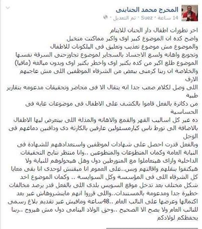 أكمل القراءة »اطفال دار الحنان بالسويس يتعرضون للإعتداء عقب الشكوى التى تقدم بها المخرج ” محمد الجناينى “